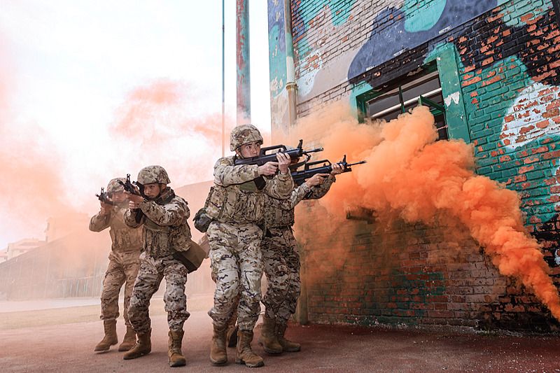 2025年2月6日,武警上海总队机动第一支队官兵正在进行班组战术协同训练。