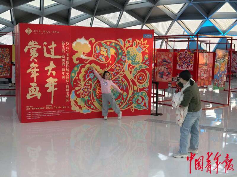 2月10日,北京通州一家购物中心内,2025年“新生活·新风尚·新年画”美术创作展示活动通州主展区在此开展,一对母女在海报前拍照打卡。据了解,本次展览由通州区文旅局举办,分为全国优秀新年画作品精选、百蛇百福、艺绘通州三大部分。作为通州展览的特色板块,“百蛇百福”展出的100幅作品均出自青年插画、年画艺术家,由画展组委会向全国百所高校及社会征集。中青报·中青网记者 田嘉硕/摄