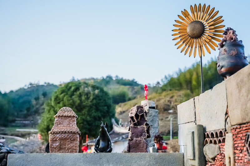 活动启动当天,“青阳溪岸艺术特展”和“泥土自在闫玉伟炻器展”,让青阳溪岸的艺术化景观空间又添内容。陈文令的雕塑作品,散落在溪岸与村落,形成一个没有围墙的美术馆。陶艺家闫玉伟带来他的粗瓷艺术作品,泥土质感十足的作品,在用废木旧石改造的天猪茶室展出,相得益彰。