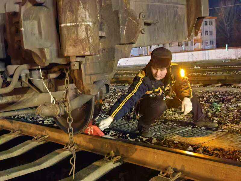 “近几日赶上寒潮,最低气温降至零下10摄氏度了,夜里风还大,吹得脸上生疼,多亏了单位配发的棉帽和棉衣裤,还有护膝。”30岁出头的陈凯旋,脸庞被风吹得粗糙又黝黑。他已有10多年的调车工作经验。当天21点50分,陈凯旋迅速进入机车与车辆之间,摘管、防溜、提钩等动作一气呵成,机车在他的指挥下很快脱离车辆,向着车列另一端驶去。“平山电厂是我们段管内的‘用煤大户’,像这样的电煤专列,忙的时候一天最多要送6列,一个班干下来,至少得走两万多步。”陈凯旋说。据了解,在中国铁路上海局集团公司淮北车务段管内,像平山这样的火力发电厂一共有五座,冬季繁忙时段,五座电厂单日最多要运输消耗电煤近7.1万吨。22点13分,在陈凯旋指挥下,换挂完毕的机车载着满满一列电煤缓缓朝着货位驶去。陈凯旋熟练地爬上车辆一端的闸台,挂好安全带,拧紧人力制动机,下车后安放好木止轮器,一趟电煤专列的货位就这样对好了。