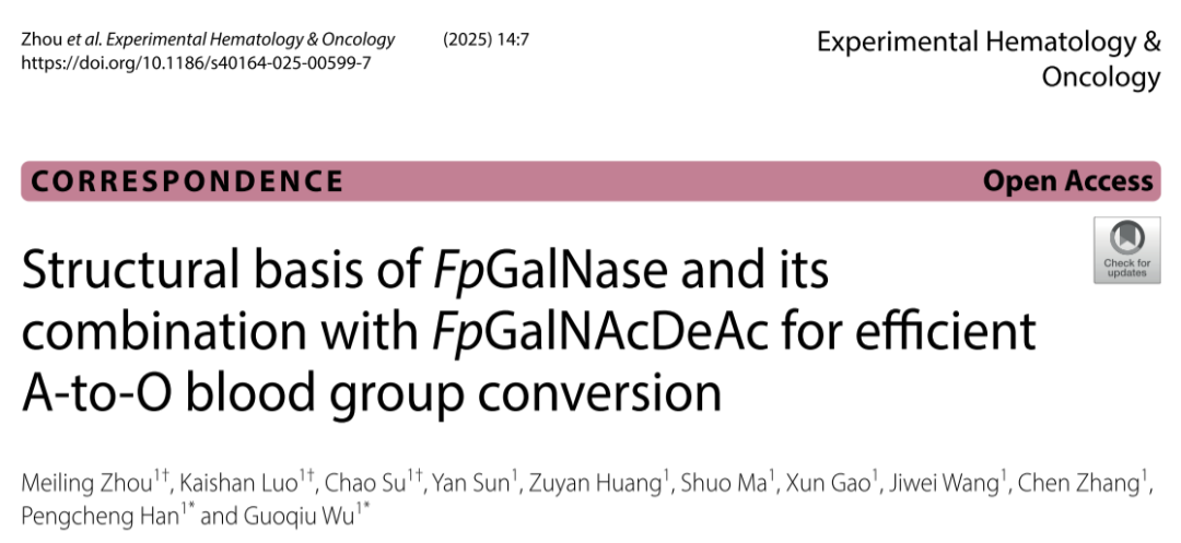 输血安全性和血液短缺等问题仍然是临床实践中面临的重大挑战。近日,东南大学附属中大医院医学检验科主任吴国球教授课题组研究鉴定了来自肠道细菌Flavonifractor plautii的两种协同酶,通过酶催化作用将红细胞(RBC)类型转化为“通用型”O型RBC。目前该研究成果已经发表在国际期刊Experimental Hematology & Oncology(中科院一区),第一作者为东南大学附属中大医院周美玲博士后、东南大学医学院博士生雒凯珊、东南大学生命健康高等研究院苏朝,通讯作者为东南大学生命健康高等研究院韩鹏程教授和东南大学附属中大医院吴国球教授。