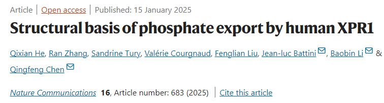 Nature Communications |生命科学中心陈庆锋团队发文揭示磷酸盐外排蛋白XPR1的工作机制