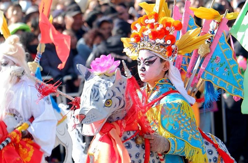 青海海东:河湟非遗社火点燃新春激情