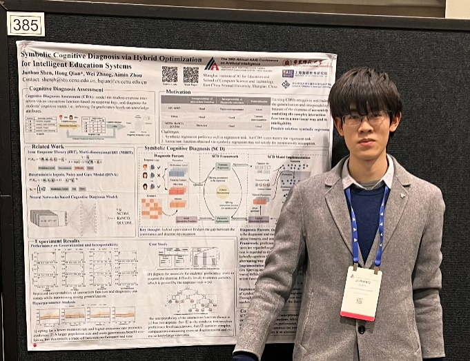 此后,沈君豪又受邀参加了2024年国际知识发现与数据挖掘大会、中国计算机学会青年菁英大会和中国机器学习及其应用研讨会,他代表团队展示超图建模在学生同质性认知诊断方法上的最新研究成果,吸引了各国研究者的广泛关注。