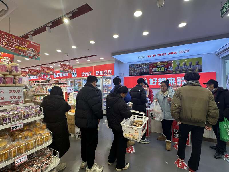 一百多平方米的店铺里满满当当的零食,这么多货竟然几天就能走完?记者好奇。“平常没这么快,但年前应该差不多,这两天在外地的陆续回来,买零食的人多,你瞧大家的购物篮都是满满当当。” 姬艳莎指了指店铺最里头,“现在还不到人最多的时候,晚上结账的人能排到那。”