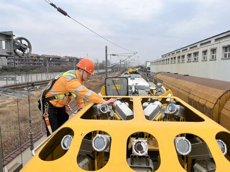 中国青年报客户端讯(周子洁 中青报·中青网记者 李剑平)2月6日15时30分,在杭州东综合维修基地,中国铁路上海局集团有限公司杭州供电段数据检测分析员葛烨忙着做当晚出工前的准备。只见他利索地爬上4C检测车车顶,熟练地检查、调试顶部的摄像头、灯光及电源开关,确保设备状态良好。