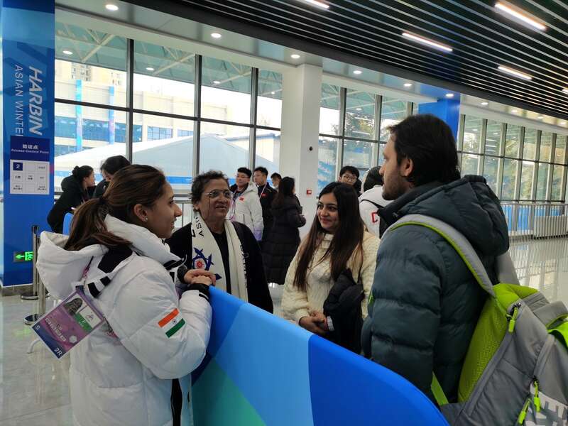 印度速度滑冰选手诗鲁蒂的家人,也选择这次亚冬会的机会,来到哈尔滨与她团聚。诗鲁蒂的姐姐巴克蒂告诉记者,印度的滑冰训练条件有限,为了追逐梦想,妹妹常年在美国训练,一家人难得有机会聚在一起。