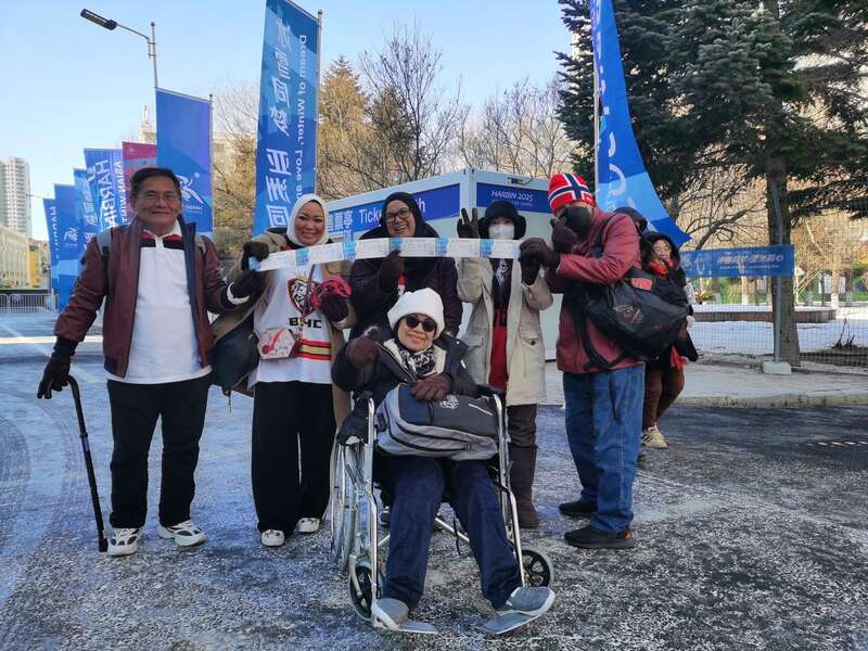 泰国观众阿伊莎的未婚夫是巴林男子冰球队的7号队员。亚冬会开幕前夕,阿伊莎带着母亲、姐妹等一家六口,从曼谷直飞到哈尔滨观赛助威。她告诉记者,母亲因为行动不便需要坐轮椅观赛,在哈尔滨,他们一家得到了赛场工作人员的悉心照顾。