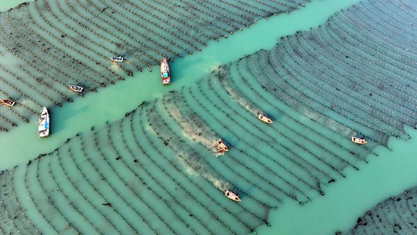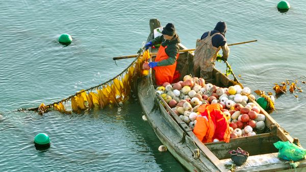 2025年2月11日,山东威海,荣成市爱伦湾海洋牧场海带养殖区,养殖工人披着朝阳驾驶渔船出海作业。 荣成市是我国重要的海带养殖区,年产鲜海带50万吨以上,荣成海带形大饱满,营养丰富,是制作高端营养品重要原料,被誉为“海带之都”。立春节气一过,荣成海上养殖管理就拉开了海上“春耕”生产序幕,海上到处呈现一派牧海耕渔繁忙的劳动景象。