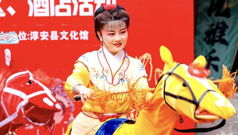 本次活动在淳安民间舞蹈《齐坑绿狮》的热烈鼓点中拉开序幕,舞狮腾飞翻越,点燃全场热情。歌舞《一路都是歌》快闪开场,青年歌手与舞者以青春朝气展现新时代杭州的新风貌。非遗创意秀《淳安风华录》则以国风音乐为背景,结合竹编、鱼灯等淳安非遗技艺现场展示,配合诗画影像,勾勒出“水墨千岛”的独特韵味。随后,睦剧经典选段《牧牛》登台,文化特派员章红婷以诙谐生动的表演,将农家生活搬上舞台,乡音乡情引发观众共鸣。