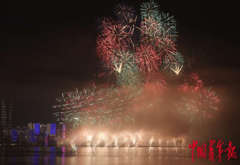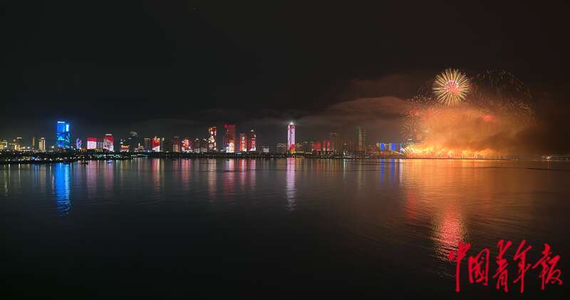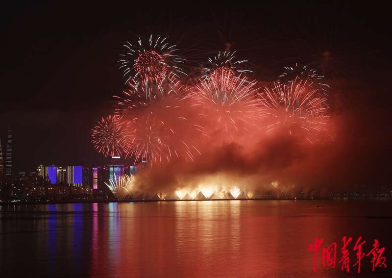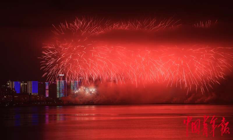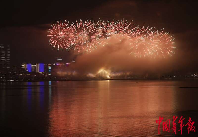 2月12日,海南海口,2025年海口元宵烟花晚会现场。刘占崑/摄