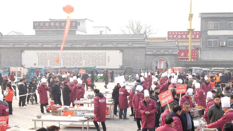 早上九点,河南周口商水县邓城镇叶氏庄园广场上,人声鼎沸。广场临时搭建的舞台上,大陈村的盘鼓舞正跳得尽兴。舞台旁边,专门腾出的空地上,六口油锅已经开始打火、加热,油香扑鼻而来。