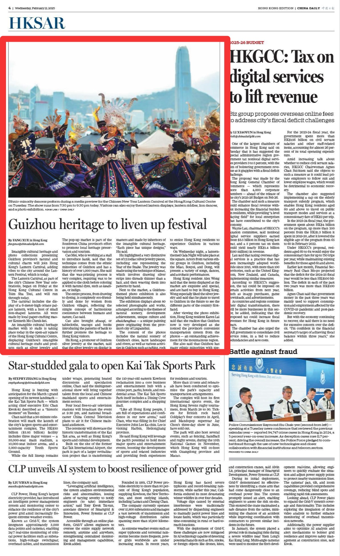 同时,作为“乙巳年香港元宵彩灯会”的重要活动之一,多彩贵州非遗集市与秘境贵州图片展也在此展出,吸引香港市民和游客驻足围观,共同探寻山水秘境,品味多彩贵州。