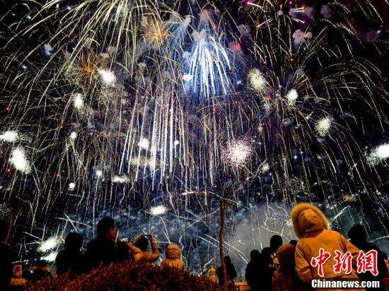 烟花在夜空绚烂绽放,人们纷纷举起手机,定格这璀璨瞬间。