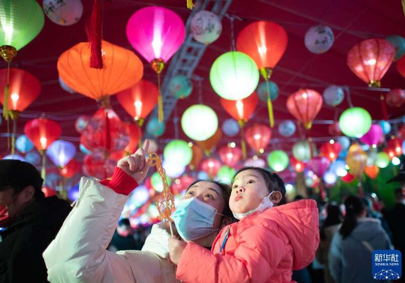 2023年2月5日,市民在湖北省博物馆的“钟鸣楚天元宵夜”灯会游园活动上观赏彩灯。新华社记者 肖艺九 摄
