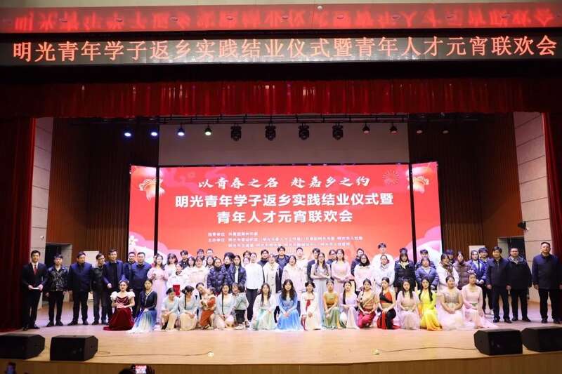 中国青年报客户端讯(李志强 袁淼 中青报·中青网记者 王海涵 王磊 )近日,在团安徽省滁州市委指导下,滁州明光市委组织部(市委人才工作局)联合团明光市委举办“以青春之名 赴嘉乡之约”青年学子返乡实践结业仪式暨青年人才元宵联欢会。明光籍返乡青年学子、青年联合会成员、青年创业代表、基层团组织书记和西部计划志愿者等200余人参加。