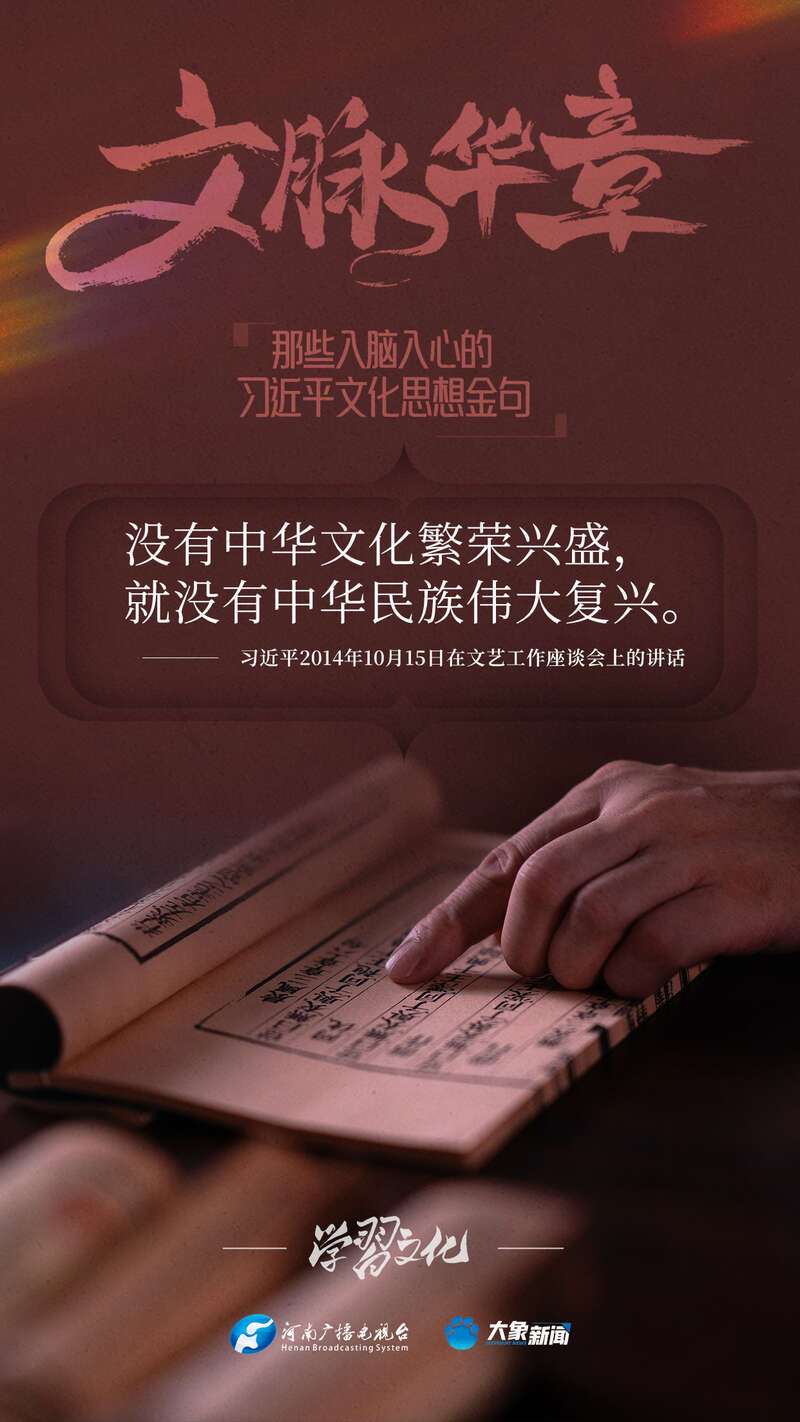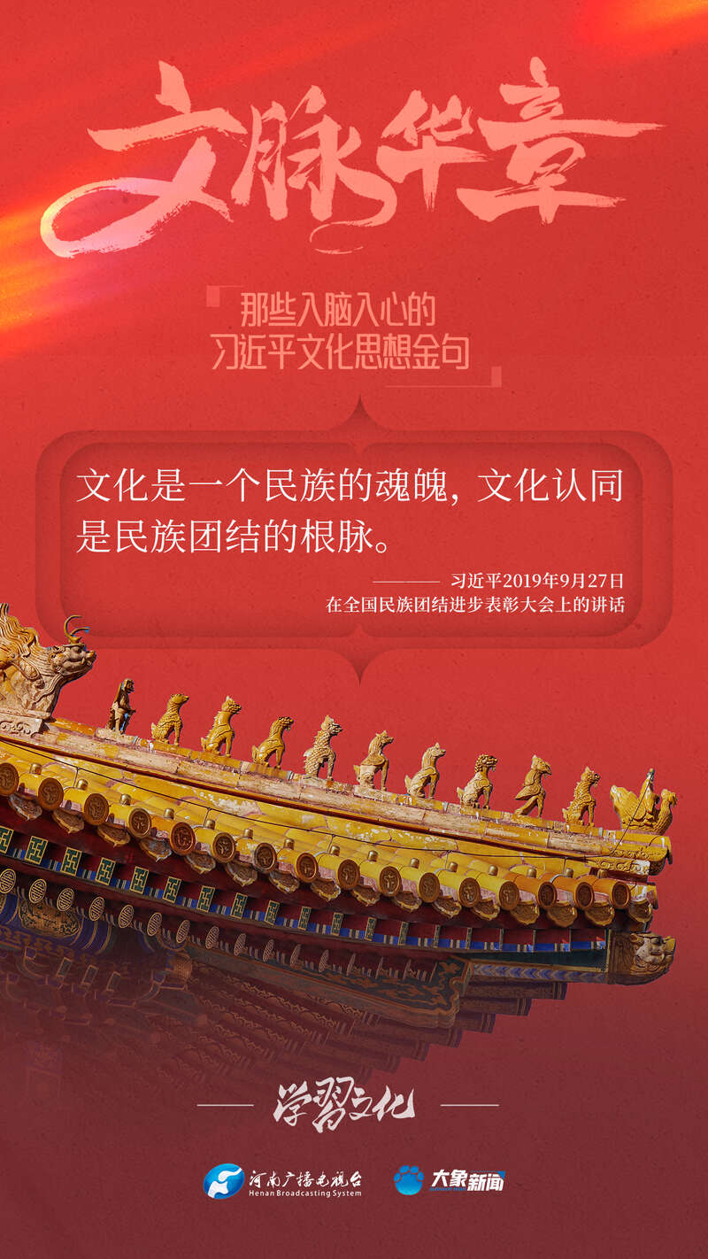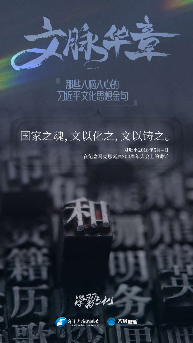 大象新闻将持续梳理,推出系列策划《那些入脑入心的习近平文化思想金句》,邀您一起认真品读。今天推出《文化是一个国家、一个民族的灵魂》。