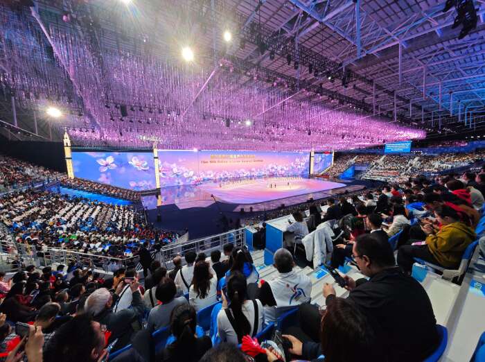 7日,第九届亚冬会在哈尔滨国际会展中心拉开帷幕,一场盛大的开幕式演出在这里上演,观看完开幕式走出场馆的观众评价:“演出很精彩,场馆太惊艳了”“仿佛走进了声光电的梦幻乐园”。