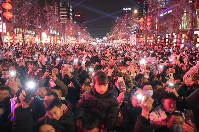 2月12日晚,四川成都高新区举办“风华正茂·成都我的家—奋进中的你我”2025年元宵节主题活动,现场市民同时点亮手机,欢度元宵佳节。汪龙华/摄