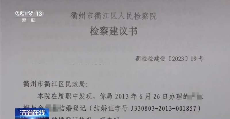 衢州市衢江区人民检察院检察长 姚俊宏:她自己是没有结过婚的,变成一下子有6次结婚的记录,对老百姓来讲,都是感觉到无法接受的,她没有这样的能力去解决这么多涉及到这么多的部门,涉及到这么多的地方的一个情况,检察机关还是要主动往前跨一步,帮助老百姓解决一些实实在在的问题。