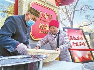 摇元宵、看舞龙……昨日,位于西城区的陶然亭公园“灵蛇献瑞 元宵乐摇”活动在北京老字号义利的体验店前拉开帷幕。工作人员现场手摇元宵,引得众多游客驻足围观。