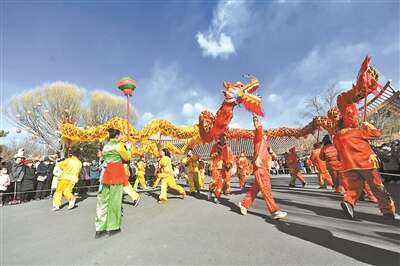 北青报记者了解到,从除夕到元宵节,北京中轴线及延长线周边开展了多项非遗传承推广活动,如:大年初一到初七,厂甸庙会打造“文市”主题庙会,使用“岁朝清供图”进行街景布置,推出“宣南往士”沉浸式演出;北京坊举办新春坊会,与非遗老字号及新生网红品牌联合举办了坊会市集系列活动,街区设置 12款具有大栅栏文化特色的古风宫灯,营造节日氛围。此外,大年初一至初五,北京东岳庙庙会上的舞狮主题演出、东城区文化馆的新春游乐会、什刹海冰雪嘉年华、宣南博物馆荣宝斋非遗木版水印特展、“万象朝阳 探花北顶”新春魔术嘉年华等各类活动,都吸引了诸多年轻游客的积极参与。