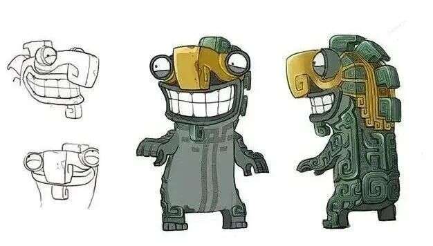 卷鼻结界兽的形象则综合了青铜大面具和青铜鹰形铃等多种元素,最明显的表现在于它卷卷的鼻子,与青铜鹰形铃的嘴部造型极为相似。