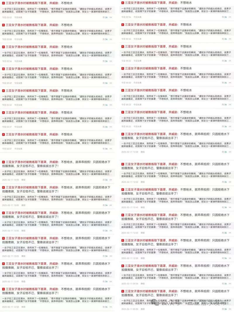 近期,三亚市潜水行业协会留意到网络上流传“三亚女子潜水时被教练取下面罩并威胁”的内容。经协会深入核查,发现全网多处出现一模一样的图文内容,相关情况协会将持续跟进,并积极配合有关部门深入调查核实。