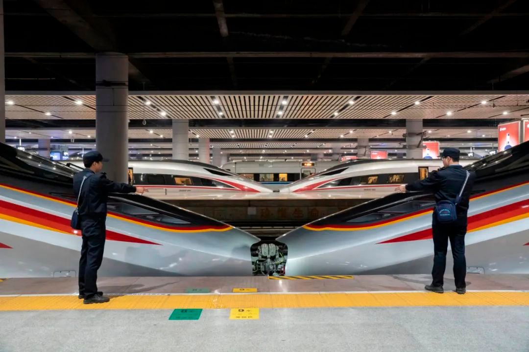 值得提醒的是,动车组重联运行时,8号与9号车厢之间无法相互通行。重联列车配备双乘务团队,乘务员、随车机械师、乘警等人员配备,与常规列车一致。