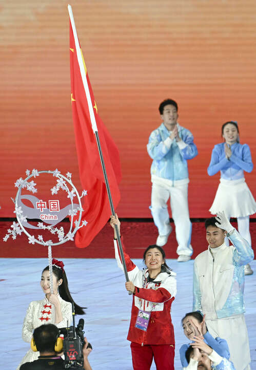自由式滑雪运动员徐梦桃担任中国代表团的旗手。35岁的她,是中国雪上项目的传奇人物,实现了冬奥会、世锦赛、世界杯等多项大赛的大满贯,成为中国雪上项目首位实现“全满贯”的运动员。在本届亚冬会上,她以 90.94 分的成绩夺得女子空中技巧金牌,还带领团队在多个项目中斩获佳绩。她坚韧不拔的精神和卓越的竞技表现,正是中国冰雪运动员的代表。