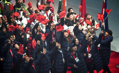 入场环节,旗手和运动员走入地屏中的“丁香如意纹”之中,吉祥物“滨滨”“妮妮”和标兵们则紧紧围绕在外,象征着亚洲国家和地区团结一心,传统吉祥纹样承载着“尔滨”最诚挚的祝福。心手相连,无畏万难,全场以紧密相依的姿态诠释着奥林匹克格言中“更团结”的深刻内涵。