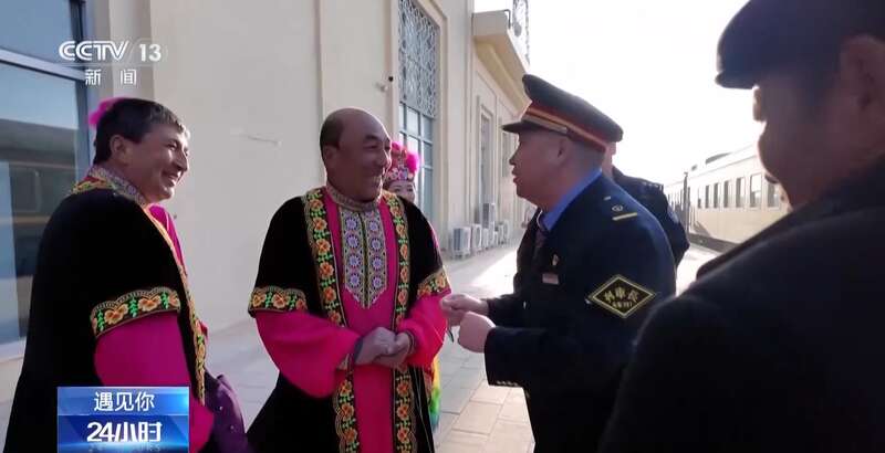 不仅是带来年货的农户们,这一次“年货节巴扎”,坡拉提汗车长也专门邀请了沿线的艺术团队加入到表演环节。