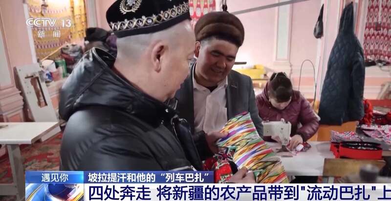 国铁乌鲁木齐局库尔勒客运段列车长 坡拉提汗:欢迎大家坐我们和田开往乌鲁木齐的7557/7558次“和田玉龙号”列车!我们7557/7558次春节之前,每十天搞一次“列车巴扎”年货节,我们今天年货节的主题是,公益助力,乡村振兴。我们最大的目的是,通过我们“和田玉龙号”公益小慢车,让南疆各民族的农产品越走越远!喜欢农产品的同志们到11号、12号车厢选购自己喜欢的产品。