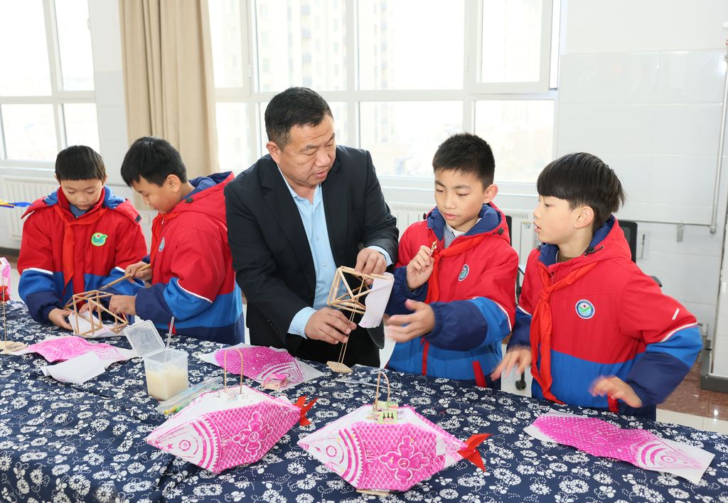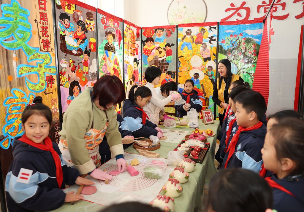 2025年2月14日,山东日照,开学第一课,学生体验多彩非遗。灵蛇纳福、自制花灯、精美剪纸、黑陶展示……日照市多所中小学将非遗融入开学第一课,塑造别出心裁的开学活动,通过沉浸式体验与互动,让传统文化在校园焕发新生。同学们带着满满的期待与朝气走入校园,开启新学期新生活。
