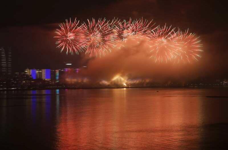 海口上演元宵夜烟花盛宴 3000架无人机在空中“舞狮”
