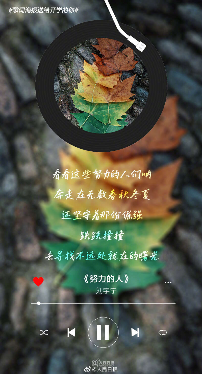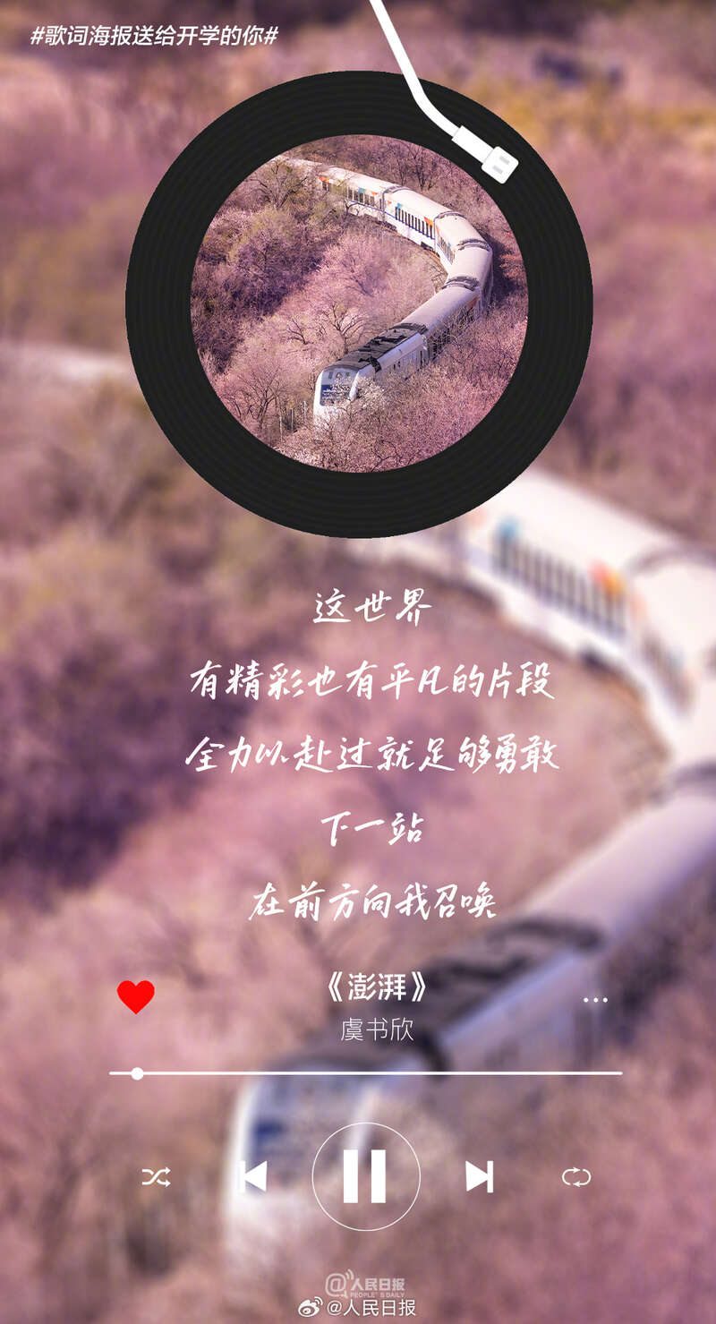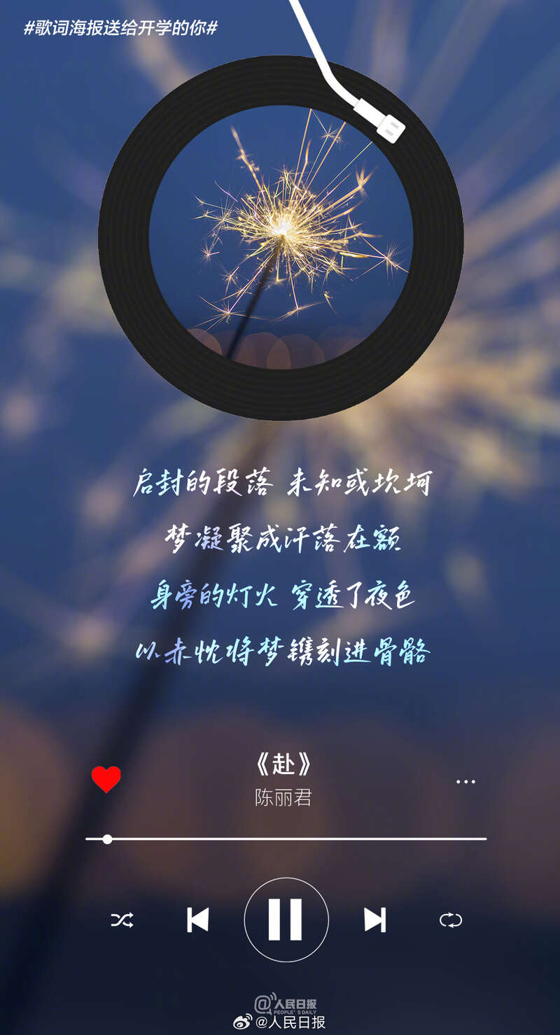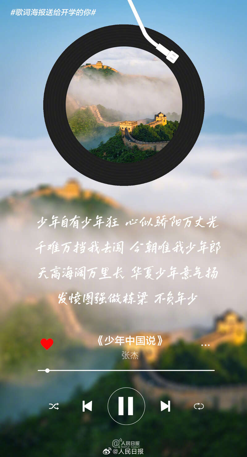 全国多地学校已陆续迎来春季学期,你开学了吗?“眼底带着炽热期待,奔赴漫漫山海”“少年自有少年狂,心似骄阳万丈光”“你留下的印记,每步都有意义”……一组歌词海报送给开学的你。新的学期,追梦前行,熠熠生辉!(来源:人民日报微博)