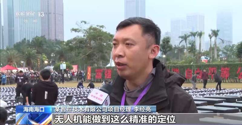 某智控技术有限公司项目经理 李经亮:无人机能做到这么精准的定位,我们依托RTK(实时动态测量技术)定位技术,通过复杂的算法,可以让飞机差分定位精确到2厘米之内,能够保证无人机在起飞降落时的精准度,同时能够保证无人机在空中形成画面的稳定性。