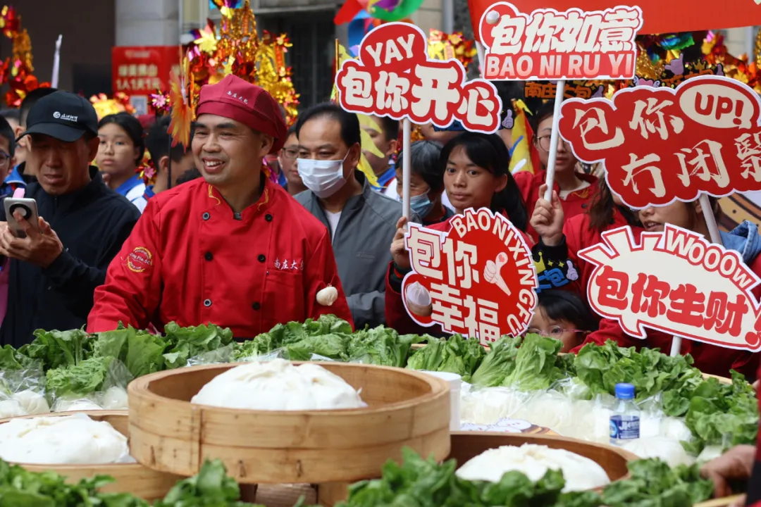 龙狮协会安排的108米大金龙穿行于人群之中,高喊“舞舞大金龙,今年一定红”,尽显神采;体育协会展现太极文化,展现传统健身法与禅城健康文化,还有不同行业领域的企业和协会参与其中,为现场群众花式送上美好祝福,展现着百业兴旺的繁荣景象。