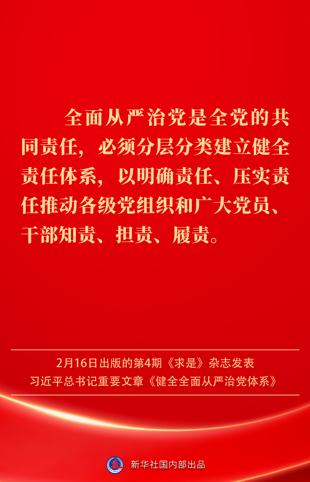 2月16日出版的第4期《求是》杂志发表习近平总书记重要文章《健全全面从严治党体系》。如何进一步健全要素齐全、功能完备、科学规范、运行高效的全面从严治党体系?习近平总书记阐明要旨——