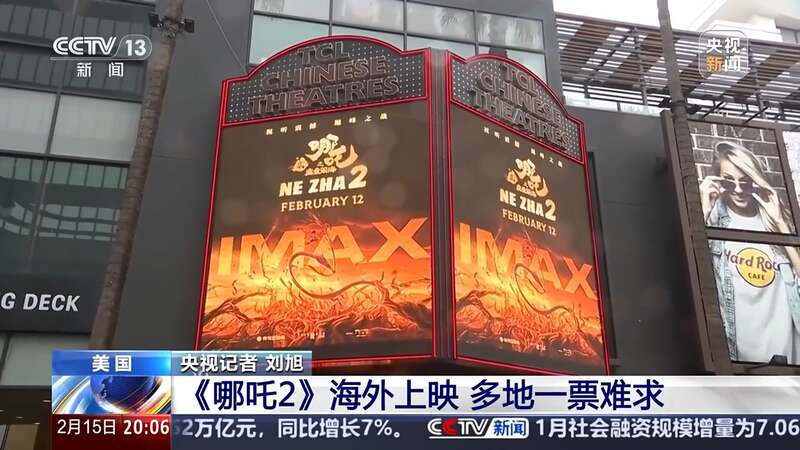 央视记者 刘旭:这里是纽约曼哈顿百老汇地区的一家地标性电影院,那么在当地时间2月12日,《哪吒2》在北美上映的提前两天,在这家影院的IMAX巨幕厅就已经开始提前点映《哪吒2》。通过手机App我们可以看到,《哪吒2》今天会一共上映四场,那么晚上7点场的已经完全售罄,下午4点和晚上10点的场次也几乎要售罄了。