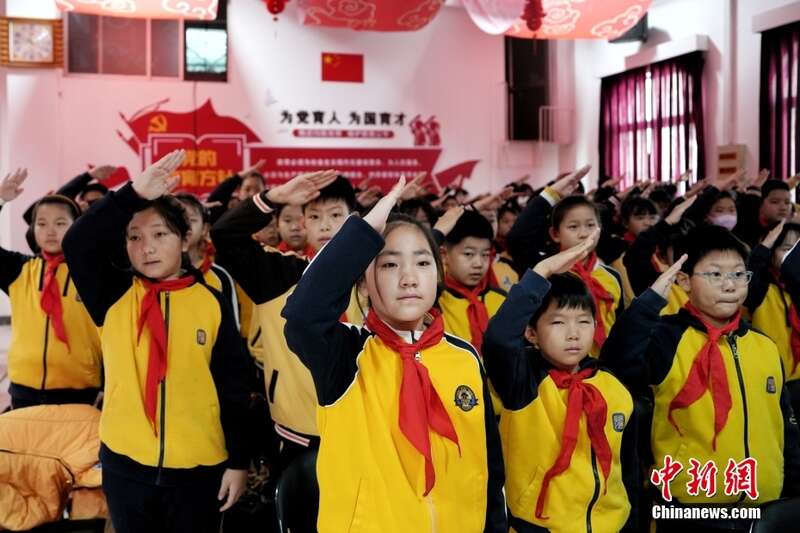 2月17日,北京市丰台区怡海小学,开学典礼上的升旗仪式。当日,北京中小学春季学期开学。