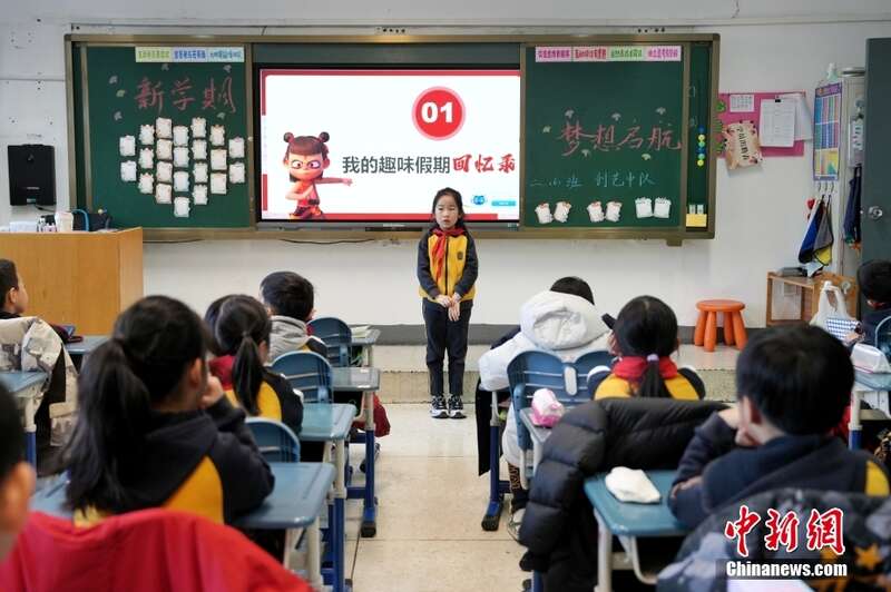 2月17日,北京市丰台区怡海小学,学生在开学第一课分享寒假见闻。当日,北京中小学春季学期开学。