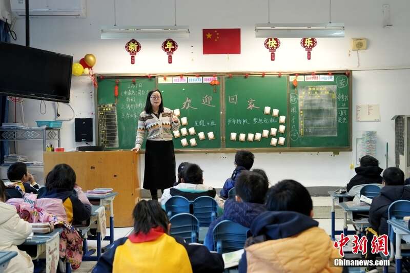 2月17日,北京市丰台区怡海小学,老师上开学第一课。当日,北京中小学春季学期开学。