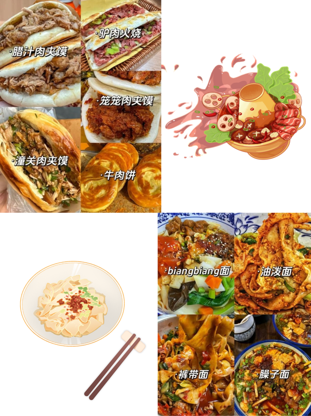 油泼面热油激出辣子香,面条筋道;肉夹馍馍酥肉香,咬一口超满足,每样都让人馋得不行 。面条馍馍虽然简单日常,却是我不可替代的家乡味道,仿佛一股温暖的力量流淌在心间,这就是让我魂牵梦绕、日思夜想的家乡美食。