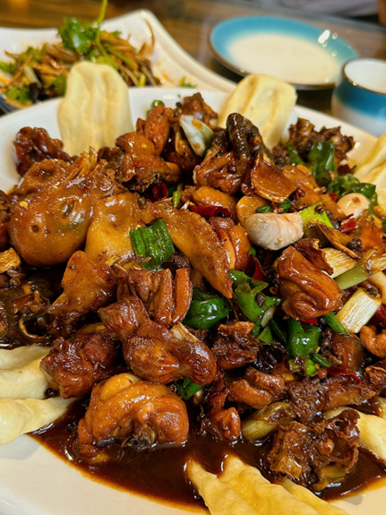临沂炒鸡以其酱香浓郁、鸡肉紧实而不柴、嫩滑可口而广受喜爱。搭配米饭更能激发炒鸡浓郁的香气,美味加倍,让人回味无穷。这道菜不仅满足了味蕾的需求,更是临沂人记忆中的家乡味道,让我倍感亲切。
