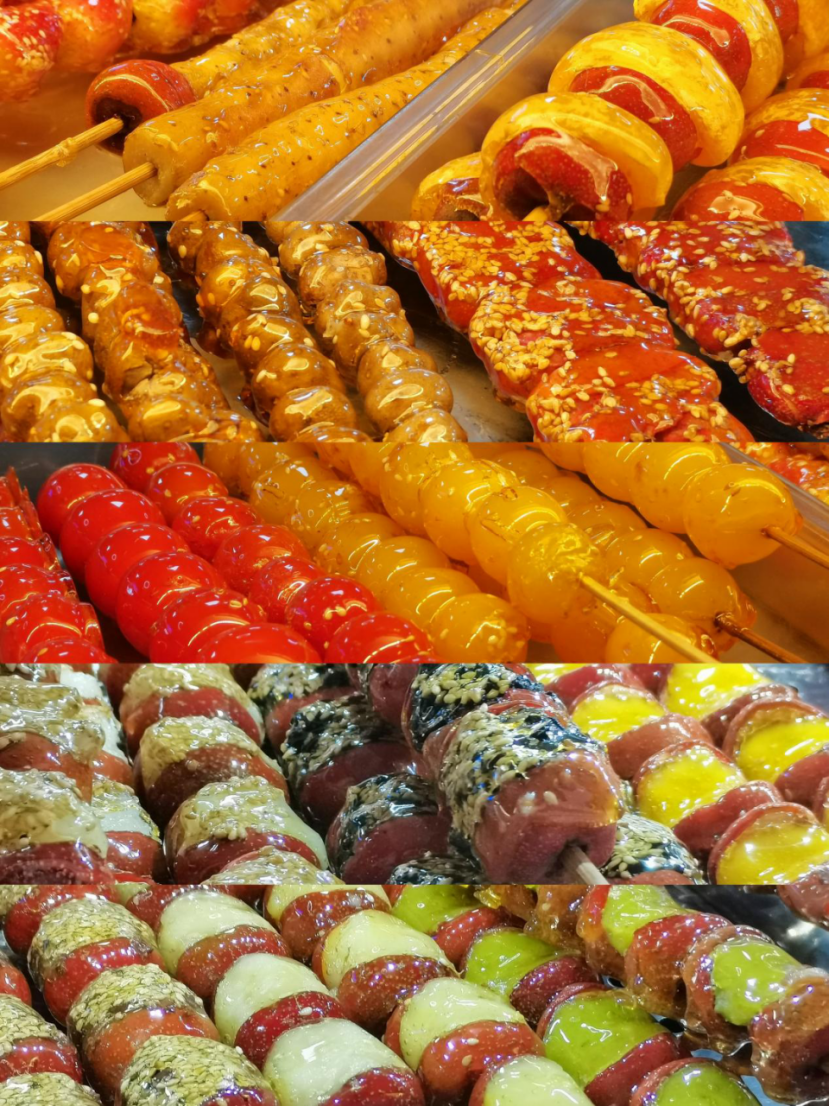 “保守传统”是老贾这些年坚持的准则。他的糖葫芦制作选料讲究:每天清晨赶到菜市场,挑选硕大饱满的山楂、新鲜的水果,配上健康的粗粮。清洗、串制、裹糖,每一步都一丝不苟。他说:“糖葫芦看着简单,实际上每一步都不能省,甜蜜的味道,离不开用心。”