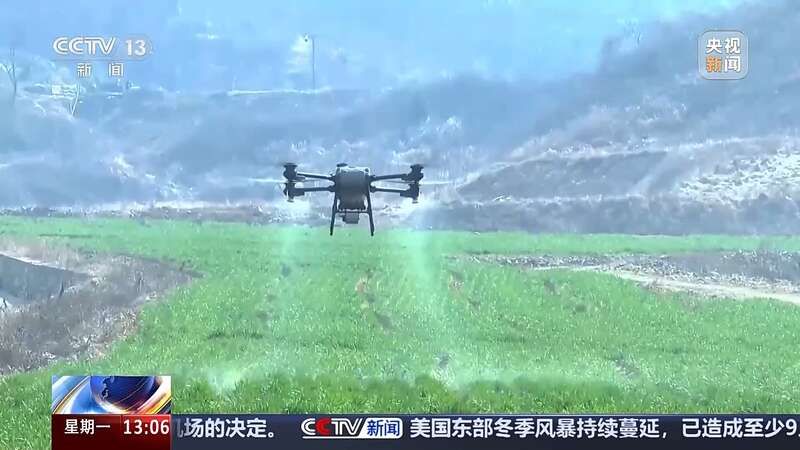 为保障春耕备耕工作的顺利进行,在小麦基地里,两架满载肥料的植保无人机正沿着设定航线精准施肥,整个过程快捷高效。
