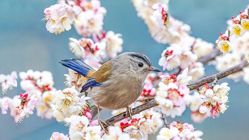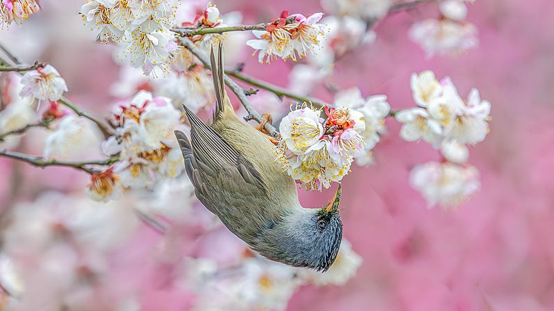 重庆:60余种梅花盛开 鸟儿花间飞舞“闹春”