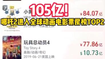 105亿!《哪吒2》进入全球动画电影票房榜TOP2