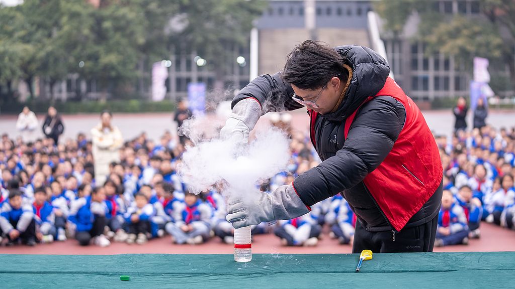 2025年2月17日,四川眉山,彭山区科协的科普志愿者走进彭山区第二中学,举行“科技点燃梦想 创新引领未来”为主题的开学第一课科普活动,通过人工智能、科技创新、模型设计、科学实验等,普及科技知识,培养科技素养,提高动手能力,让学生们零距离感受科技魅力。